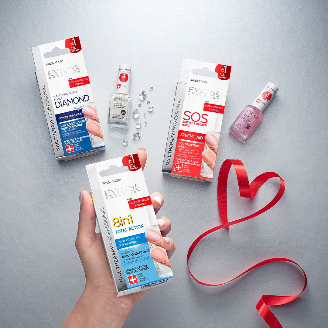 - Maksimum güçlendirici elmas, zayıf tırnakları çatlamaya ve kırılganlığa karşı korumaya destekolur.